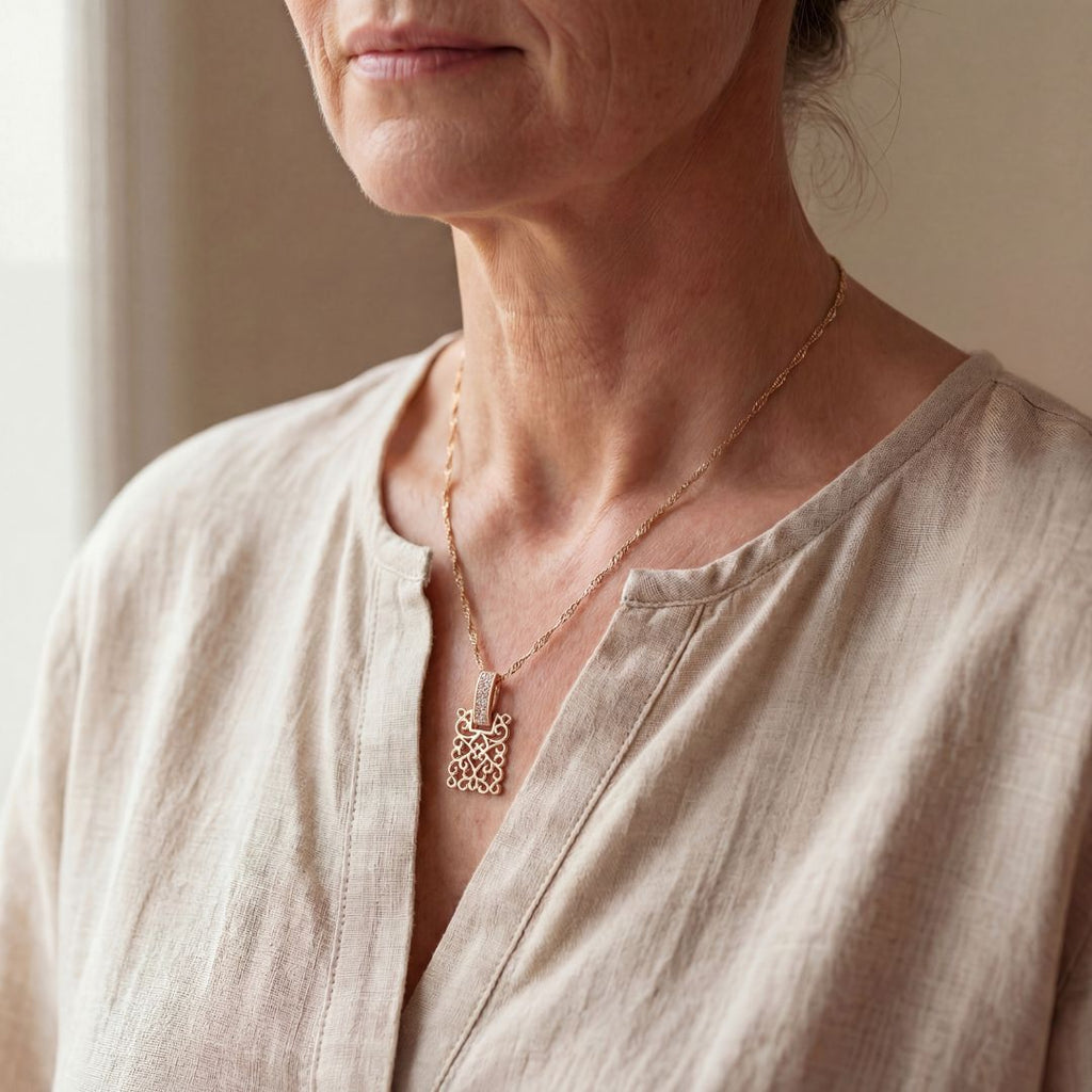 An intricate mandala motif brings quiet symmetry to a refined necklace designed for considered self-expression. Understated yet distinctive, it lends a serene focal point from day to evening.