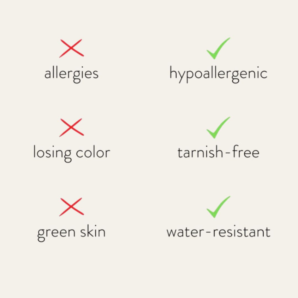 Your jewellery is made to last. It will not fade or tarnish with normal wear. We use high quality materials and durable plating so your pieces keep their shine. If you store them with care and keep them away from harsh products, they will stay beautiful for a very long time.