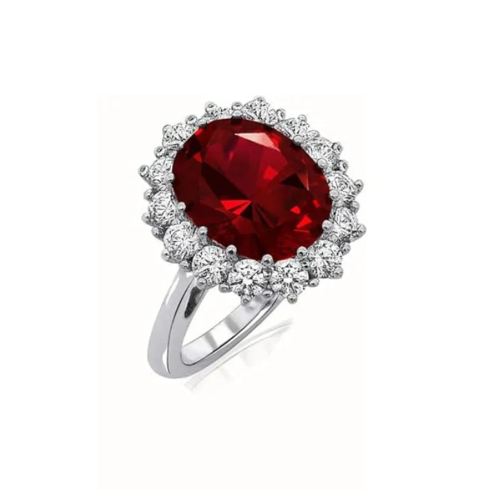 • Large oval red centre stone with deep, rich colour